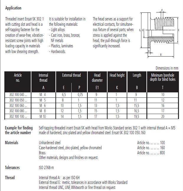 302-1型自攻湖州丝套是一种新型的紧固件,使用后能够加强螺纹强度。产品有内外牙,将其嵌入塑料,铝合金,铸铁,铜等较软材料内,形成的内螺纹孔就可以具有较高的强度。
